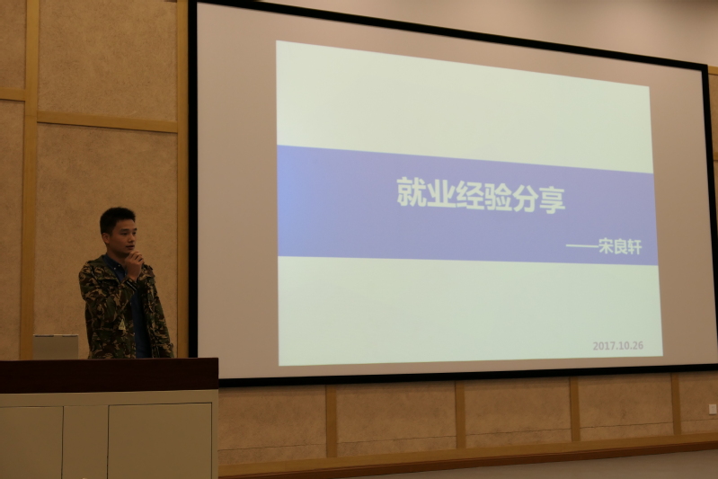 刘志鹏跟大家讲了三点期望和要求;张雪银具体分析了14级目前的基本情况,具体介绍了基本流程和毕业季注意事项;会议还邀请了学院研究生(15级控制)宋良轩、叶鹏飞分享了自己就业、考研方面的经验。