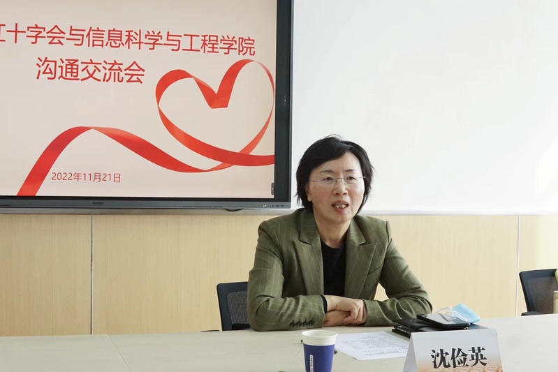 11月21日,奉贤区红十字会与小妲己直播 在徐汇校区开展沟通交流会。奉贤区红十字会党组书记、常务副会长沈俭英,党组成员、副会长王燕,办公室主任范丹红,志愿服务条线负责人屠慧清;学院党委书记侍洪波,党委副书记杨文,团委书记张佳怡,19级本科生辅导员高子钧参加会议。