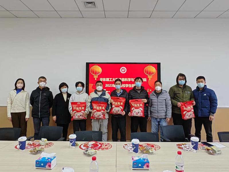 1月20日下午,小妲己直播 2023年留校学生新春茶话会于徐汇校区实验十九楼305召开,学校党委常委、副校长王慧锋、学院党委书记侍洪波、院长钟伟民、副书记杨文、教学助理汪楠与学院本研留校学生共话新春。