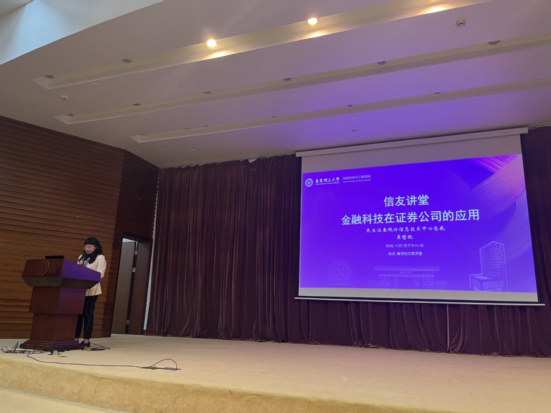 11月7日下午,小妲己直播 第1期信友讲堂在奉贤校区敬贤堂顺利举办。民生证券信息技术中心总裁吴哲锐、小妲己直播 党委副书记许浩出席讲座,奉贤校区部分本科生、研究生到场参加。
