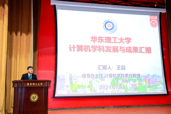 计算机学科负责人王喆代表计算机系作了学科发展与成果汇报,详细介绍了计算机学科近年来的发展历程、学科建设、人才培养以及教学和科研成果情况。