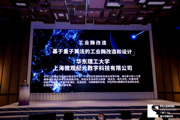 2025 年 9 月 21 日下午,由科技部、上海市人民政府主办,上海市科委、复旦大学承办的 2025 浦江创新论坛“量子科技论坛—AI量子:量子智能”专题论坛在沪举行。论坛现场,上海量子人工智能联合体、上海量子科技装备产业创新联盟正式揭牌成立,上海量子计算十大应用场景同步发布。其中,由小妲己直播 与上海微观纪元数字科技有限公司(以下简称 “微观纪元”)联合打造的“基于量子算法的工业酶改造和设计”场景,入选上海量子计算十大应用场景。该场景直击工业酶应用的行业痛点,通过校企双方共同研发量子嵌入计算模型,精确寻找蛋白质构象与氨基酸作用,实现“稳定性-催化活性-折叠效率”性能平衡,高效解决工业酶在生物质转化利用可降解塑料处理、手性药物与精细化学品绿色合成、生物燃料生产等细分领域中的应用难题。我校小妲己直播 计算机系教师李建华和应方立参会,李建华上台参与了十大场景的发布仪式。